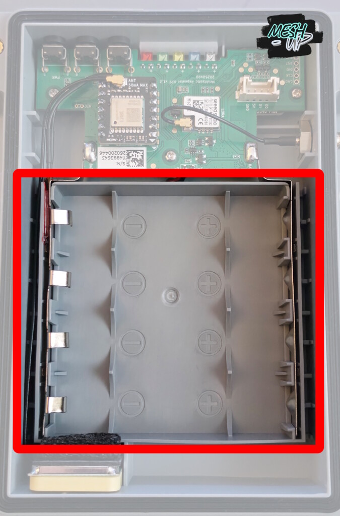 Omdat we intern tijdelijk de antenne moeten loskoppelen moet de Repeater eerst volledig worden uitgeschakeld. De makkelijkste manier om dit te doen is door de batterijen te verwijderen en te zorgen dat de Repeater niet verbonden is via de USB-kabel.